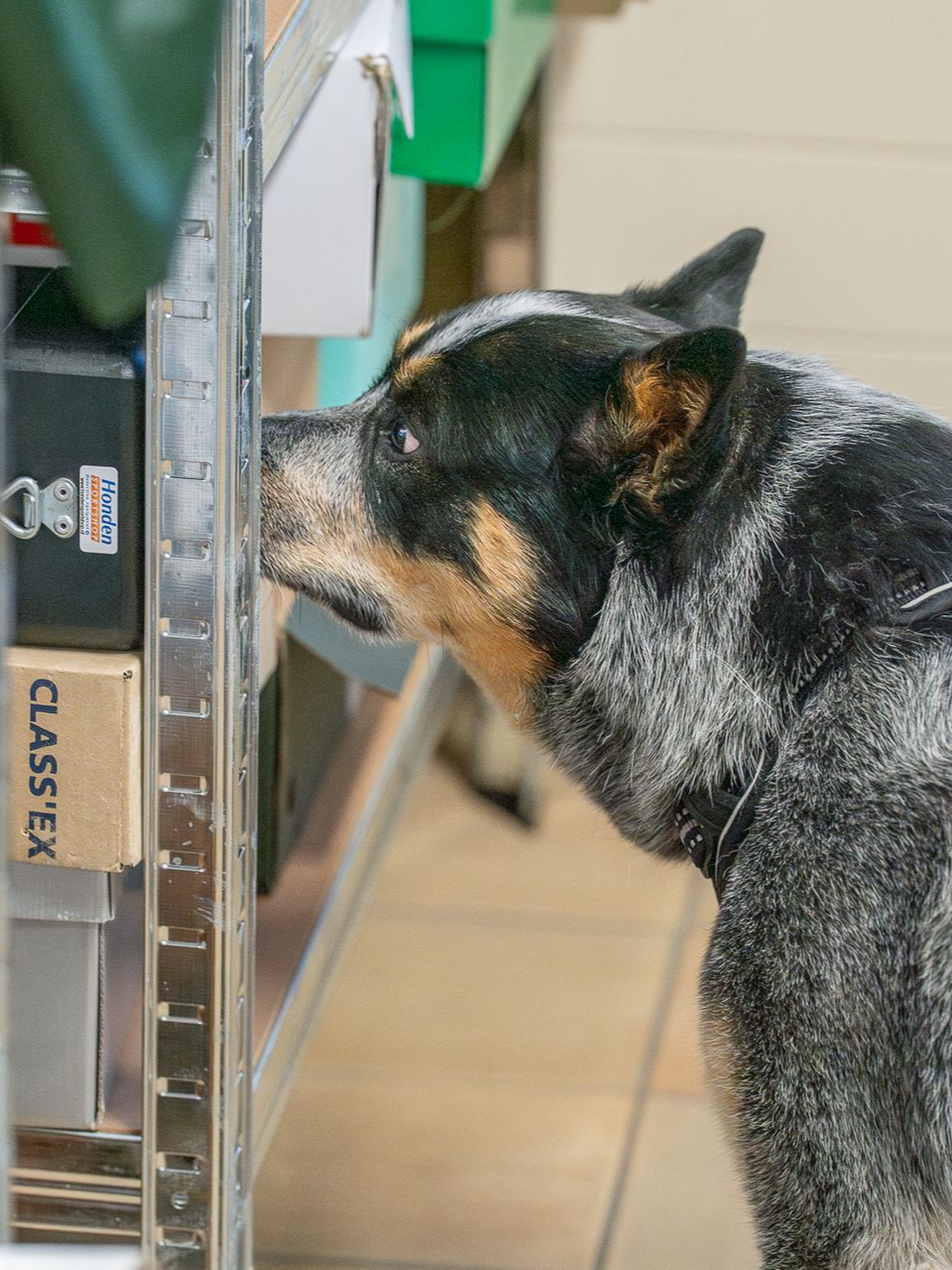 Tijdens geurdetectie leert je hond hoe hij een geur kan zoeken, herkennen en ernaar kan verwijzen. Net zoals speurhonden dat doen, maar dan met veilige en legale stoffen. Ik baseer me hiervoor op zijn natuurlijke drift om een balletje of snoepje te zoeken.